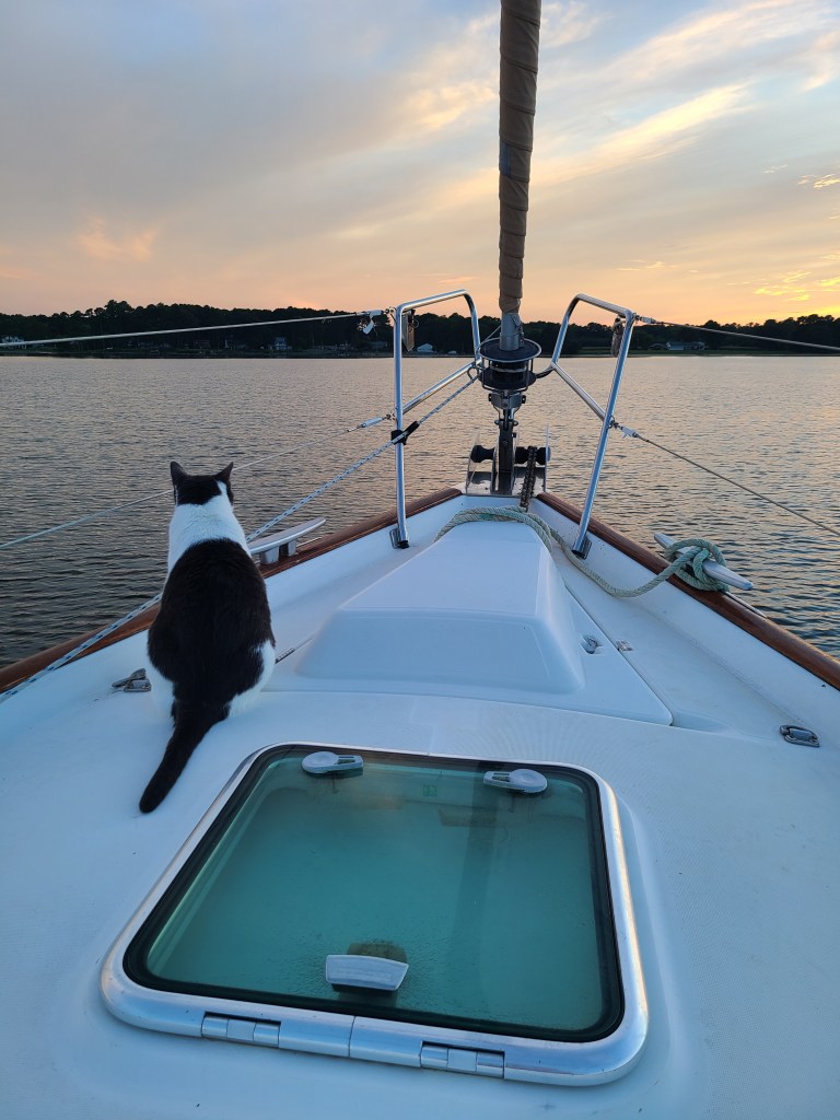 After two nights on the Ware River, we weighed anchor and headed toward Deltaville on the northeastern most portion of Virginia’s Middle Peninsula. After a glorious 32.9 nautical mile sail with light winds and a comfortable sea state, we arrived in Godfrey Bay, an anchorage we were already familiar with. Winds overnight were forecasted to come out of the west, so we knew we’d be properly protected in this location off the Piankatank River. (The last time we visited Godfrey Bay was in July 2021. It was our first stop on our cruise to the Northeast.)