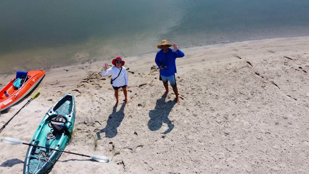 The morning after our arrival, we kayaked back toward Oyster Creek and the marshes that we couldn’t bring the dinghy through successfully. (We later determined that we may have gotten through if we hugged the eastern side of the channel. The western side was shoaling.) Kayaking through the marshes was beautiful and reminded us of the kayaking we used to do on the Poquoson River at our old house. Once through, we pulled our kayaks onto a beach at North Point, which was on the Chesapeake Bay side of the water. Here we flew the drone and looked for arrow heads and shark teeth, which we found neither. We did see a largely decomposed turtle which we estimated to be about 4-5 feet long. We’ve seen these incredible creatures of similar size swimming out in the Bay and are always amazed by how large they can grow. We wrapped up our drone flying and kayaked back to the boat when we looked up and saw clouds to the north of us that started to produce thunder.