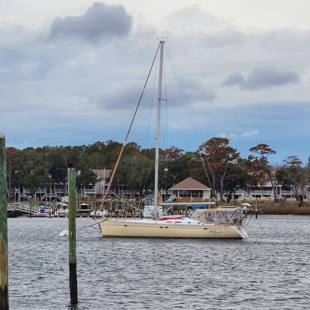 After a full day of rest in Carolina Beach, it felt good to get on the move again. We pulled in to the Myrtle Beach Yacht Club (this was now our 3rd stay at this marina), but were annoyed at the location of our slip for the night. They didn’t assign our slip until we were pulling into the channel for the marina and confirmed our slip on a dock we were unfamiliar with. With our boat being close to 50 feet long, the fairway that led to our slip was barely wider than the length of our boat. With no bow thrusters on Mystic Hearts, this made us anxious for leaving the following morning because we would want no wind and a perfect getaway. Spoiler: Paul backed up our boat like a boss when it was time to leave, but we literally only had 2-3 feet of clearance on both our stern and bow.