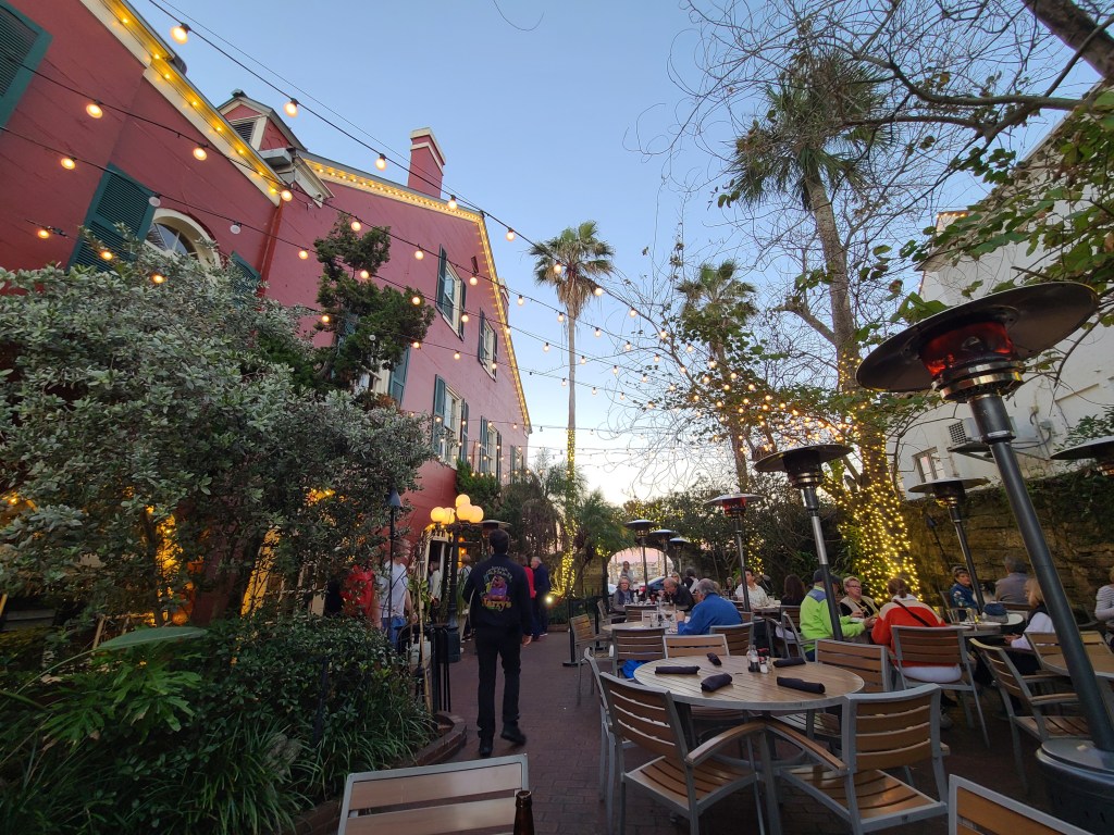 Barley Republic, the best Irish gastro-pub in town! Christopher, a fellow cruiser friend who spends his winters in St. Augustine on SV Reliant, let us know about a cruiser Happy Hour meet-up taking place at this restaurant. We had never been and hadn’t seen our friend since the prior winter we were in Beaufort, SC, so we happily agreed to the meet-up, which took place on their large front porch patio. Barley Republic serves up a lot of typical English/Irish food and they make a very solid fish and chips and margarita. I’m interested in coming back to try other fare and enjoy the ambiance.