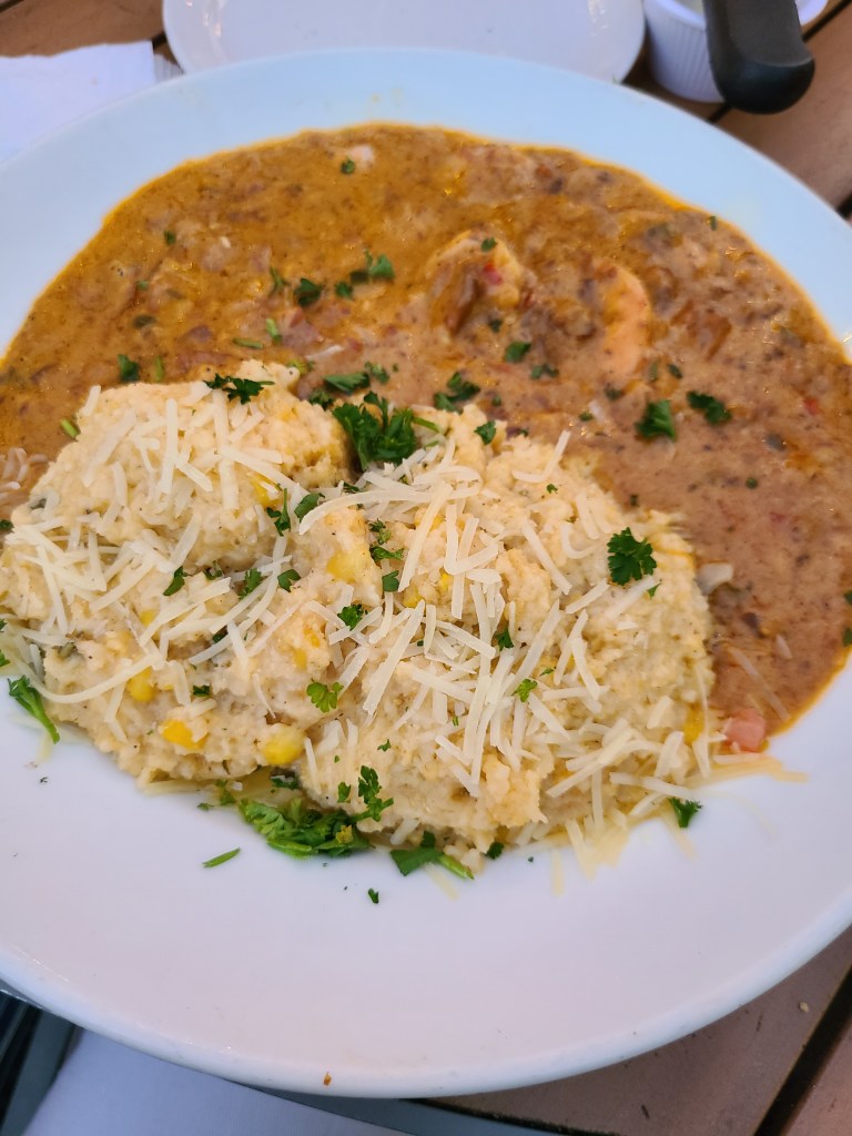 Harry’s Seafood Bar & Grille was another restaurant we were super excited to try. Our friends Steph and Travis from Sailing Jibsea recommended it to us last year, but we never got around to eating there. While in town, we caught up with our friend Greg from SV Longtail (who used to live aboard near us in Norfolk) and left the marina for good to begin his world travels. We last said goodbye to him while in Virginia, thinking we wouldn’t see him again, but were pleasantly surprised to cross paths again in Florida. We broke bread at this incredible restaurant, Paul enjoying their French market pasta (with chicken and shrimp) and me enjoying their shrimp and grits. We left that meal absolutely stuffed and still had leftovers for another night!
