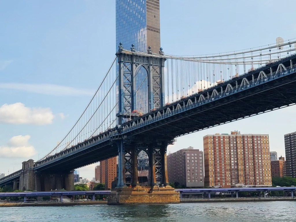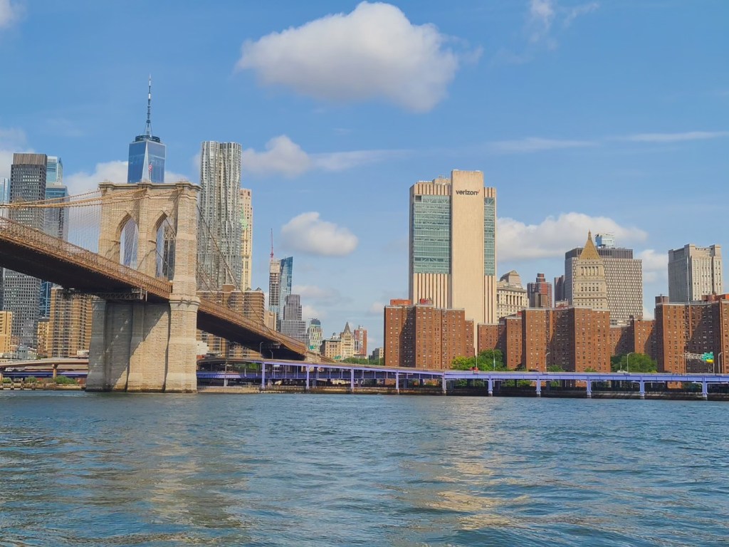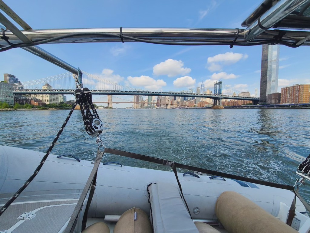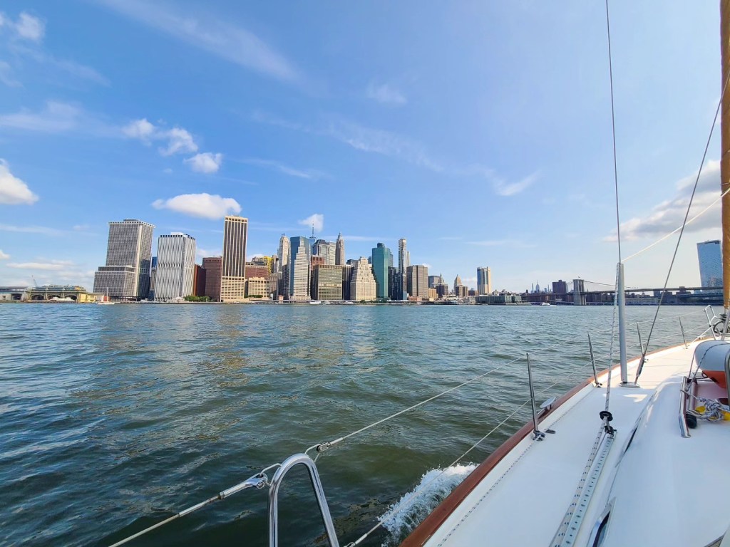 Whatever tiredness we may have felt went away completely when the sight of the New York City skyline came into view. It doesn’t matter how many times you’ve been to New York (we’ve been about a half dozen times before boat life), it’s still an exciting experience. The skyscrapers slowly come into focus, and as you enter the harbor, you notice familiar sights like the Statue of Liberty and Governors Island. Turning into the East River, we love going under the Brooklyn and Manhattan Bridges, spotting the Empire State Building, the Chrysler Building, the United Nations Headquarters, Roosevelt Island, Rikers Island, and more. We’re always asked how “Hell Gate” is – a stretch of the East River that’s narrow and known for rough currents. We always time our entrance to the East River with the current and although we’ve felt the current pull us in that stretch of water, it’s never been an issue for us.