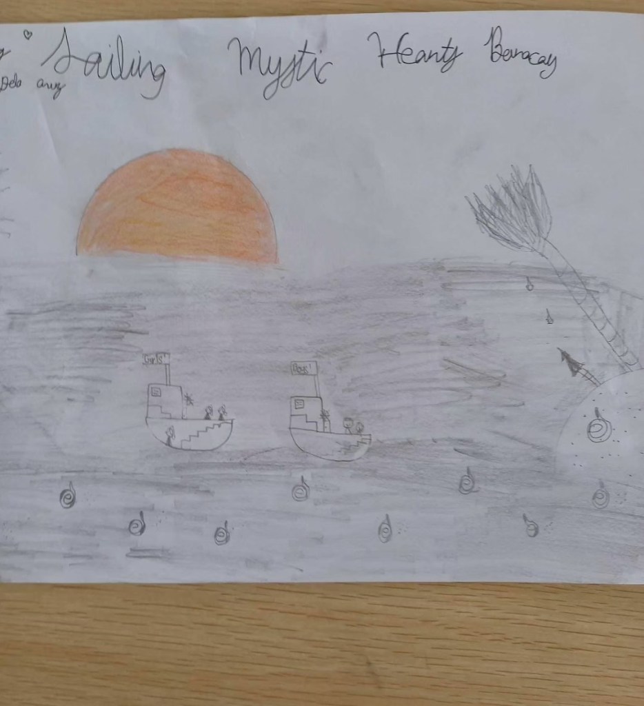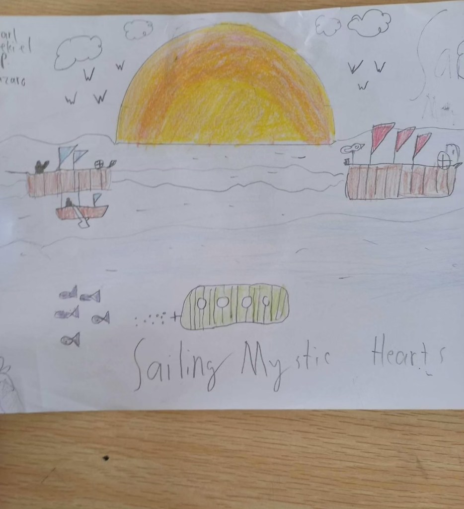 One of our followers from the Philippines recently had her grade 4 class draw pictures of Mystic Hearts for an art activity. I was so touched that she shared our sailing with her class and sent us pictures of their wonderful artwork.